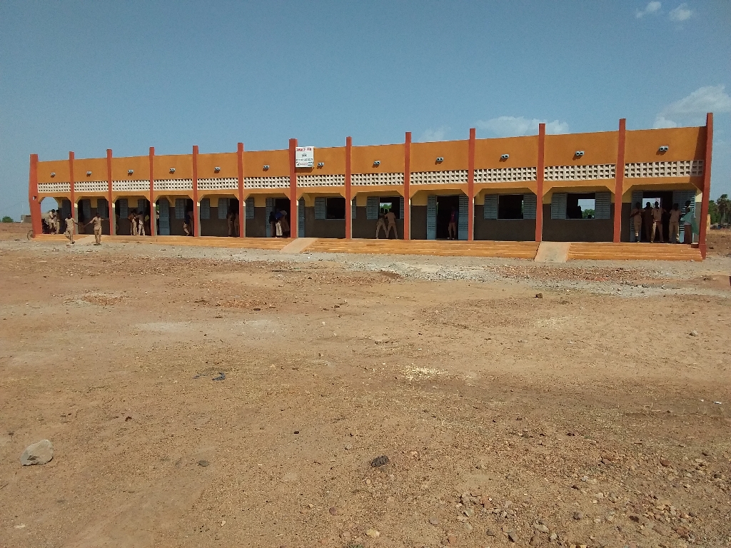 Vue des salles de classe réalisées au profit du CEG de Oualgo dans la commune de Baskouré. Infrastructure construite grâce au FDCI III avec le soutien de la coopération allemande (KfW).