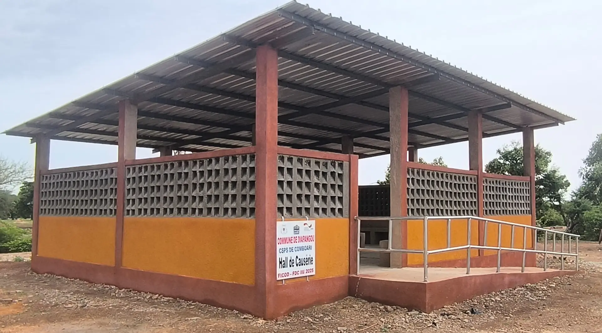 Vue du hall de causerie construit au CSPS de Tourghoguin, dans la commune de Tensobtenga, dans le cadre du projet FDCI III.